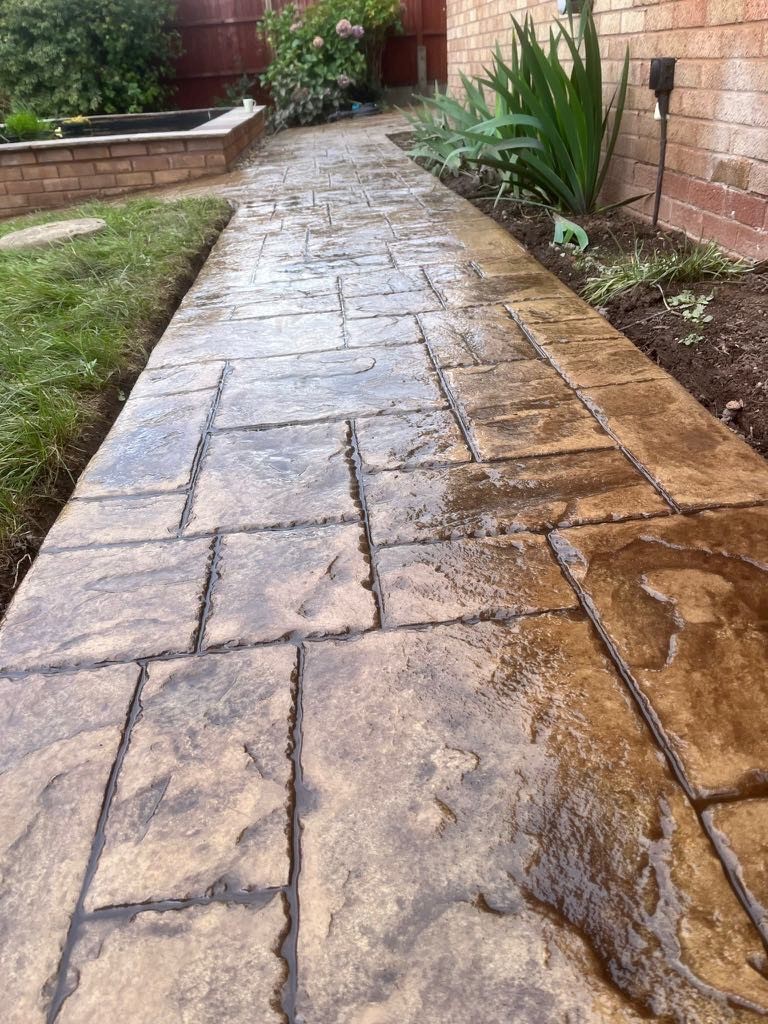 Get in touch for a FREE QUOTE: 07397 184407 joepennpaving@yahoo.com Facebook Instagram Pattern Imprinted Concrete Experts Penn Paving offers you pattern imprinted concrete driveways, patios, paths, walk ways, shed bases and re-sealing of original paving. Benefits of pattern imprinted concreteOver 140 different colour and pattern combinationsHard wearingLow maintenanceWeed and sink freeAdds value to your propertyAs Creteprint registered installers, we purchase the best and most proven products on the market. Why choose Penn Paving?Experts in pattern imprinted concreteHard working and friendlyEasily contactableFree, no-obligation quotesDriveway security options available “We are so happy with our new drive, it’s transformed our home” Reseals Already have patterned imprinted concrete? No problem!No matter how old your imprinted concrete is, Penn Paving can maintain and restore your driveway or patio making it look as good as new. “It looks brand new again, I can’t believe the difference it has made. Thank you!” Contact Us:What’s App/SMS: 07397 184407Email: joepennpaving@yahoo.com Facebook Instagram All materials supplied by Creteprint Ltd